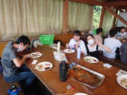 みんなで協力して、つくった焼きそばと牛肉串、ウインナー!!