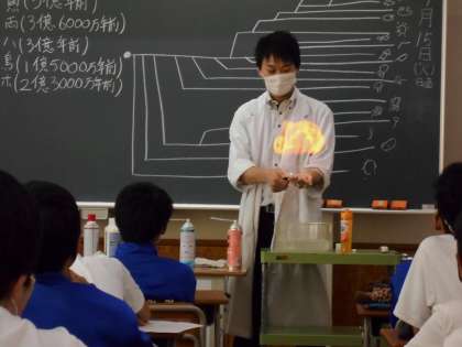 「化学」と聞いた瞬間生徒は「難しそう…」という反応をしていましたが、まるで魔法のような化学の実演を見てみんな目を輝かせていました。
