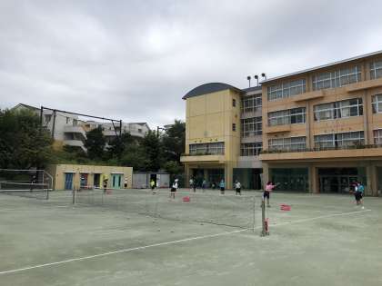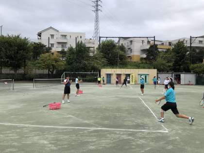 ソフトテニス部は、世田谷区新人大会 団体戦の部を明日に控え、本日は7時半より学校で練習をしています。