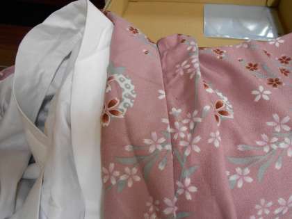 帯を結ぶのにも悪戦苦闘。肩揚げがとれる日を夢見て……。