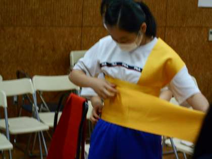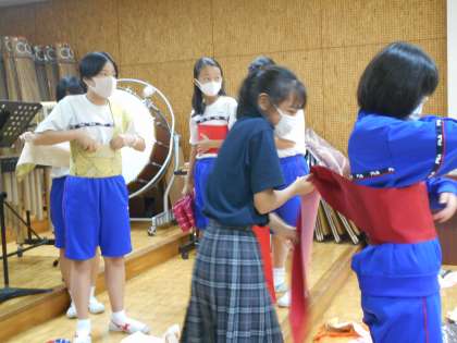 9月も下旬、今日は長着の肩揚げをしたり帯の結び方を特訓したりしました。