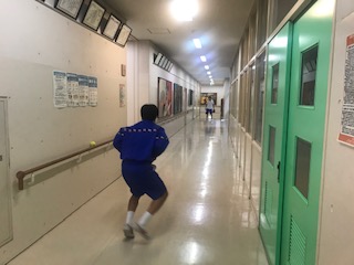 土曜授業のあと、あいにくの雨ですが、校内を上手く使って、練習に励んでいます。