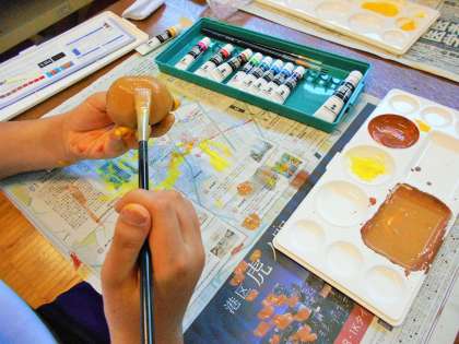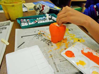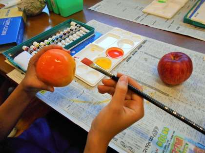 それぞれ、どんな色を混ぜたら本物の色に近付くか、絵の具を何回も混ぜて、塗り重ねて試行錯誤しています。