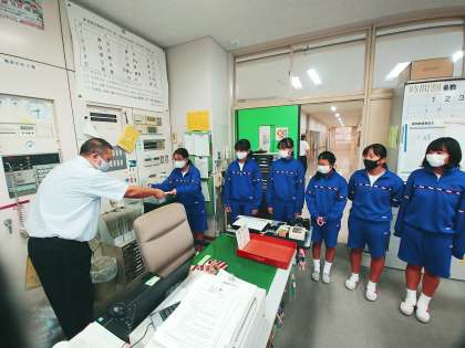 全校朝礼の後、陸上競技とソフトテニスの表彰を行いました。