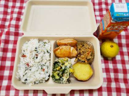 給食室では、お弁当給食の準備を1ヵ月前から着々と進めており、発注や人員の都合上、急な変更はできず、予定通りお弁当給食となりました。