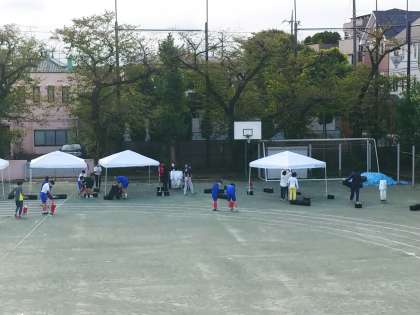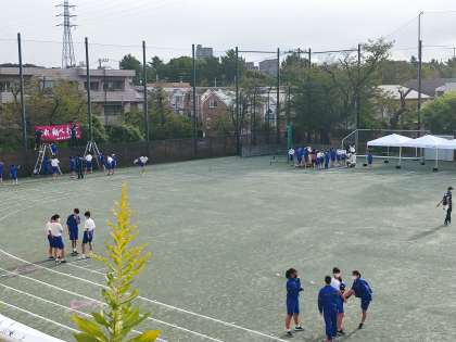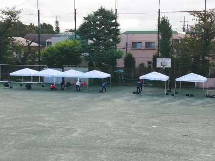 白いテントは、同窓会、東深沢・等々力コミュニティー、東深沢スポーツ・文化クラブ、PTAの皆様が創立60周年を記念して、生徒たちのために寄付してくださいました。