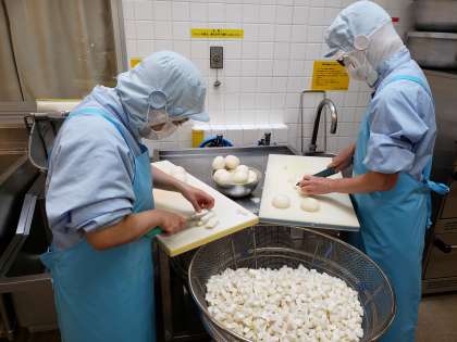 13キロもの「かぶ」も1つ1つ丁寧に切ります。もちろん葉っぱも捨てずに使っていますよ。