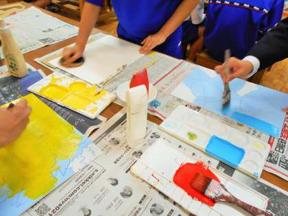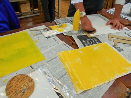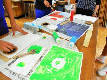 生徒は試行錯誤しながらも、版画表現を楽しんでいる様子でした。