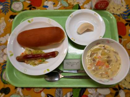セルフホットドッグ…その名の通り、コッペパンにウインナーとキャベツのソテーを自分ではさむ、という想定のメニューです。が…