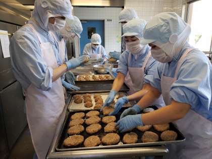 給食室みんなで、ひとつひとつ丁寧に作りました。