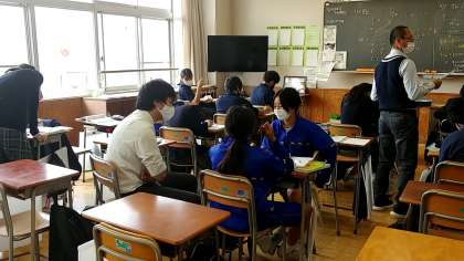 先生も説明用のホワイトボードも持って生徒たちの質問に答えていました。