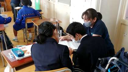 基本的には、自力で進めていましたが、どうして理解できていない部分は生徒同士で教え合っていました。