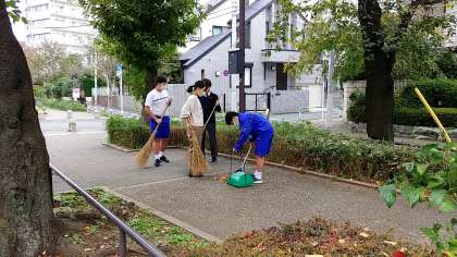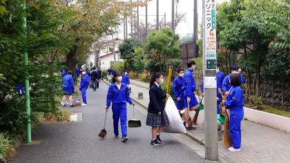 落ち葉が多くなってきたので、けっこう大変ですが、生徒たちは頑張っています。
