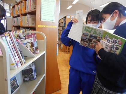 校外学習に向けて 公開日 2020/11/04 更新日 2020/11/04 できごと 1年生は今月末、校外学習で鎌倉に赴きます。 本日はそのための事前学習をしました。 図書室やPC室を利用し、鎌倉の名所について調べます。 図書に関しては学校外の図書館と連携し、鎌倉の名所や寺社仏閣についての資料を借りています。 一生懸命にページをめくったり検索をしたりしながら事前学習のレポートをまとめております。 (高橋) いいね(0)