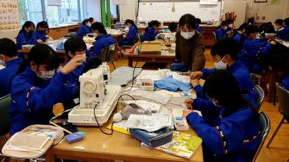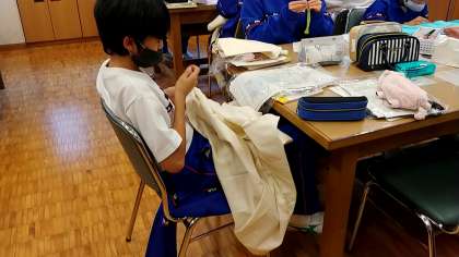 1年生の家庭科の授業では、エプロンづくりをしています。