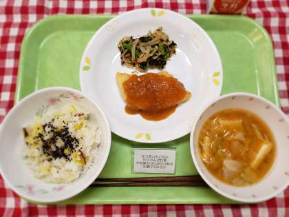 給食では、粉を付けて揚げたタラに、大根おろしのソースをかけました。