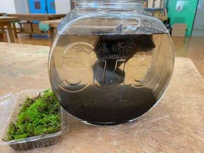 これを行わないと、流木は下の写真のように中にある空気で浮き輪のように浮いてきてしまいます。