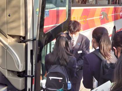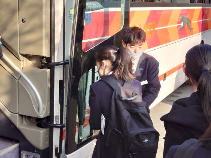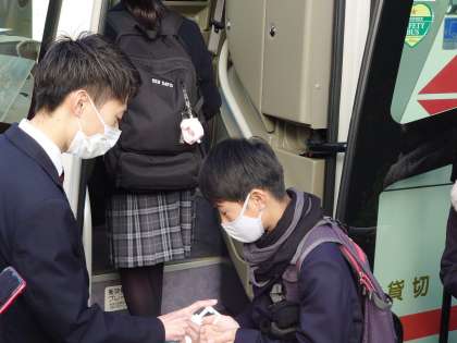 バスに乗る前に、運転手さんによる手の消毒を行います。