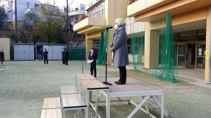 本日の全校朝礼では、青少年深沢地区委員会の方が「中学生の主張大会」における発表者募集についてお話してくださいました。