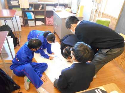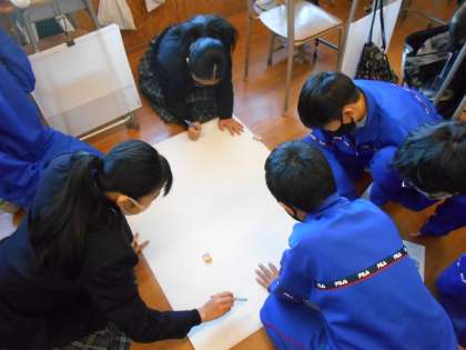 1年生は先日行われた校外学習のまとめで新聞づくりを行っています。