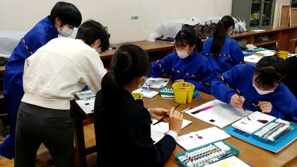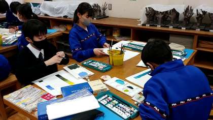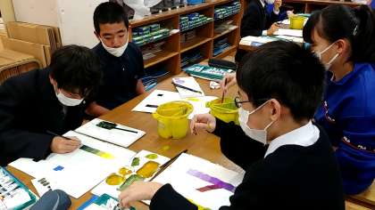 自分自身で絵の具の色を調整して、白から黒へつなげていく作品作りをしていました。