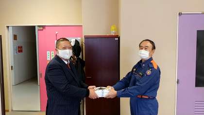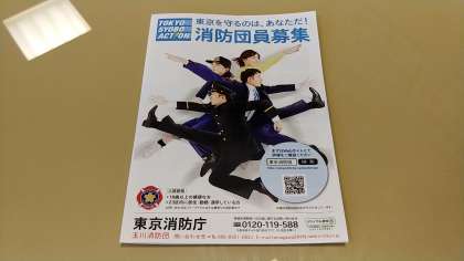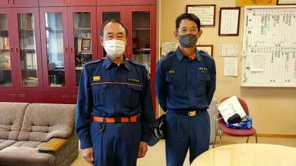 玉川消防団長(本校同窓会長)と東京消防庁の方が来校され、保護者向けの消防団員募集のリーフレット配布をお願いされました。