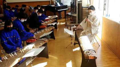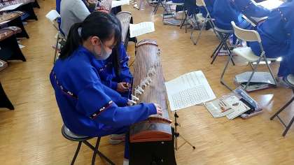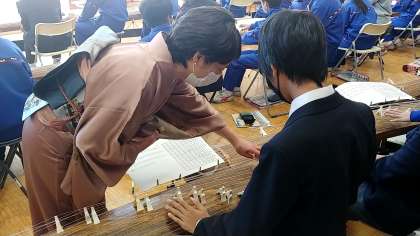 地域の方を講師にお招きし、2年生が「箏」の授業を行っています。