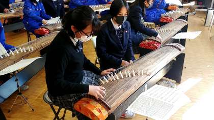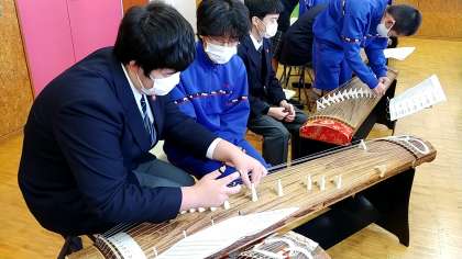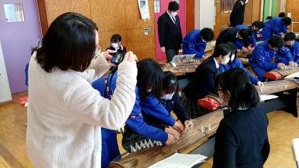 本日も音楽の授業で、「箏」を体験しています。