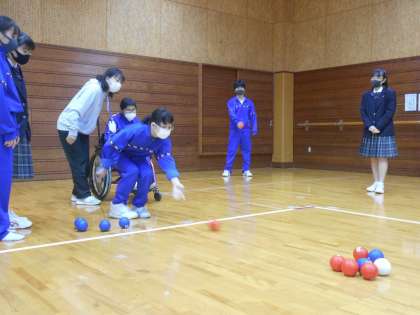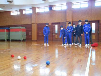 本日昼休みに、武道場では「めっちゃボッチャ」が行われていました。