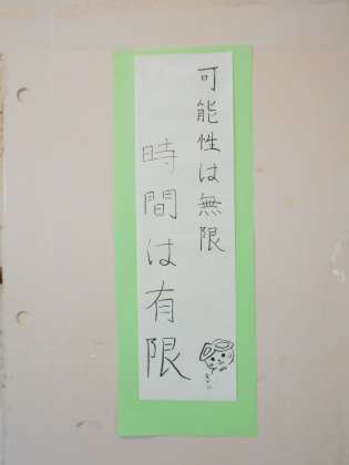 「可能性は無限、時間は有限」とは1学年の学年目標と冬休みの目標を組み合わせたものです。1年生のみなさんには初めての冬休みです。限られた時間を存分に楽しみましょう!