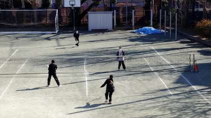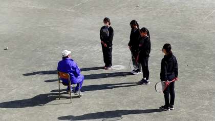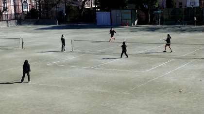 ソフトテニス部の冬休み最終日(7日)の練習の様子です。
