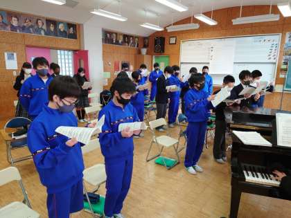 生徒のみなさんは、真剣に取り組んで、マスクをして、ソーシャルディスタンスに気を付けながら、合唱に取り組みました。