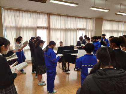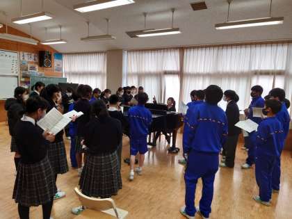 生徒のみなさんは、真剣に取り組んで、マスクをして、ソーシャルディスタンスに気を付けながら、合唱に取り組みました。