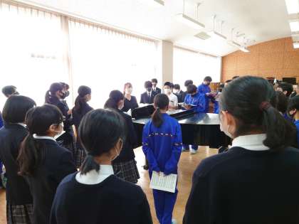 生徒のみなさんは、真剣に取り組んで、マスクをして、ソーシャルディスタンスに気を付けながら、合唱に取り組みました。