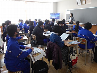 授業では、高校の生徒が実際に作った英語の動画を見ながら楽しく英語に触れることができました。