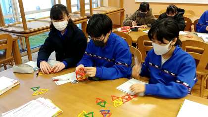 1年生の数学は、立体の展開図を考えていました。