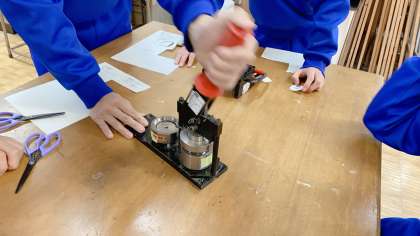 3年生の缶バッジづくりでは、デザインが完成した生徒から実際に機械を使って缶バッジを制作しています。