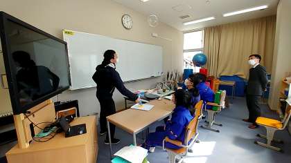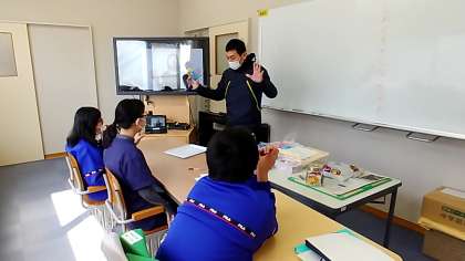 問題の中にシャボン玉の詩に関する問題があり、実際にシャボン玉を飛ばしたり、手話を取り入れるなど、詩の意味を諸感覚を使って理解していました。