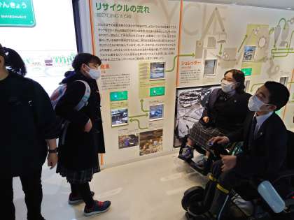 マスクをして班行動です!!科学技術館のいろいろなものを見学したり、体験しています。