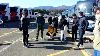 バスに集まって来ました。
