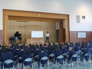 学級委員が中心となり、先生方にサプライズで準備を進めてくれていました。各先生方へは色紙が手渡され、学年全員による「正解」の歌唱のプレゼントがありました。素敵な歌声、先生方への想い、しっかりと伝わってきました。ありがとう。