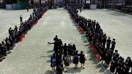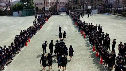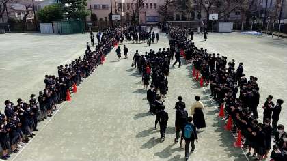 オンラインで参加していた1,2年生も、校庭での見送りでは、