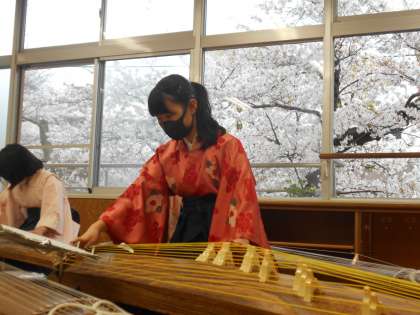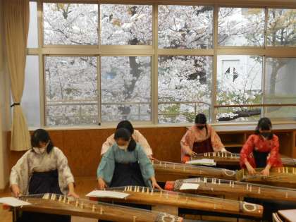 昨日、日本文化部では桜がよく見える教室をお借りして演奏をしました。