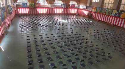 皆さんの入学式が素敵な式になるよう、会場の最終点検を行っています。