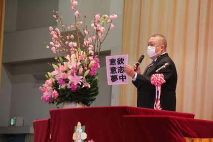 春の花が咲き誇り、生命の輝きを感じる季節になりました。今日のこのよき日に、保護者の皆様や二・三年生の皆さんが見守る中で入学式が挙行できますことに、心から感謝いたします。