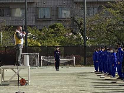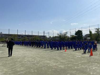 本日は全校朝礼を校庭で行いました。