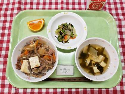 今日の汁物は、わかめとたけのこを使った「若竹(わかたけ)汁」、旬の味覚です。