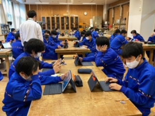 本日3年生は、「society5.0」に関しての調べ学習を行いました。生徒の皆さんは、自分の意見や感想を交えながら主体的に取り組むことができました。(豊岡)