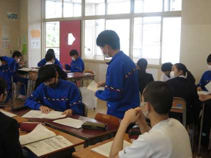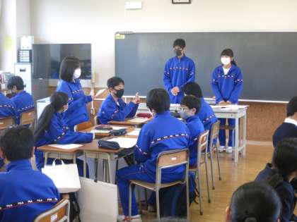 昨日は前期生徒総会に向けての学級討議(議案書読み合わせ)を行いました。