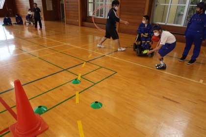 I組の体育ではフリスビーを行いました。